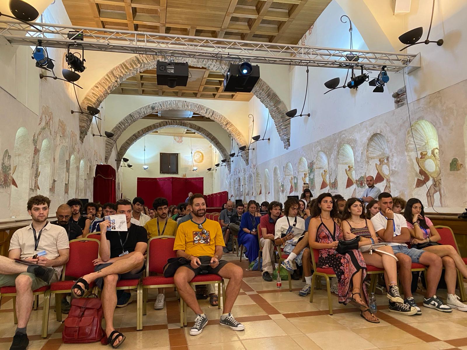 Lunedì 4 agosto 2025 si è svolta la sessione d’avvio della settimana di Cinemadamare a Grumento Nova, Pz, nella stupenda sala conferenze ricavata in spazi affrescati del Castello dei Sanseverino.